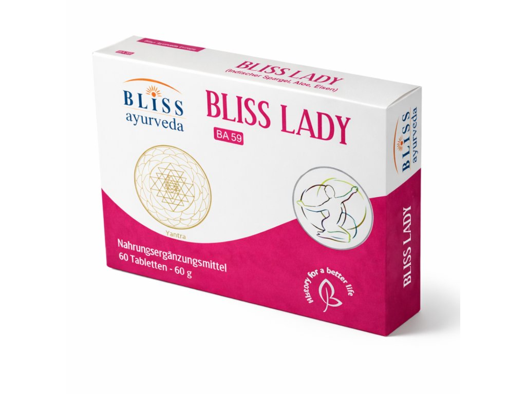 Zářivost a krása pokožky, ženské chování a jemný charakter jsou všechny regulovány ženskými hormony, které pomáhají ženě mít zdravý a přirozeně krásný vzhled. Aloe Vera, součást Bliss Lady, pomáhá ženě udržet mládí a krásu, pružnou a zdravou pleť. Indický chřest (Shatawari) je od starověku používaný k posílení tkání reprodukčního systému, pro zvýšení zdrojů zdraví a normální produkci ženských pohlavních hormonů.