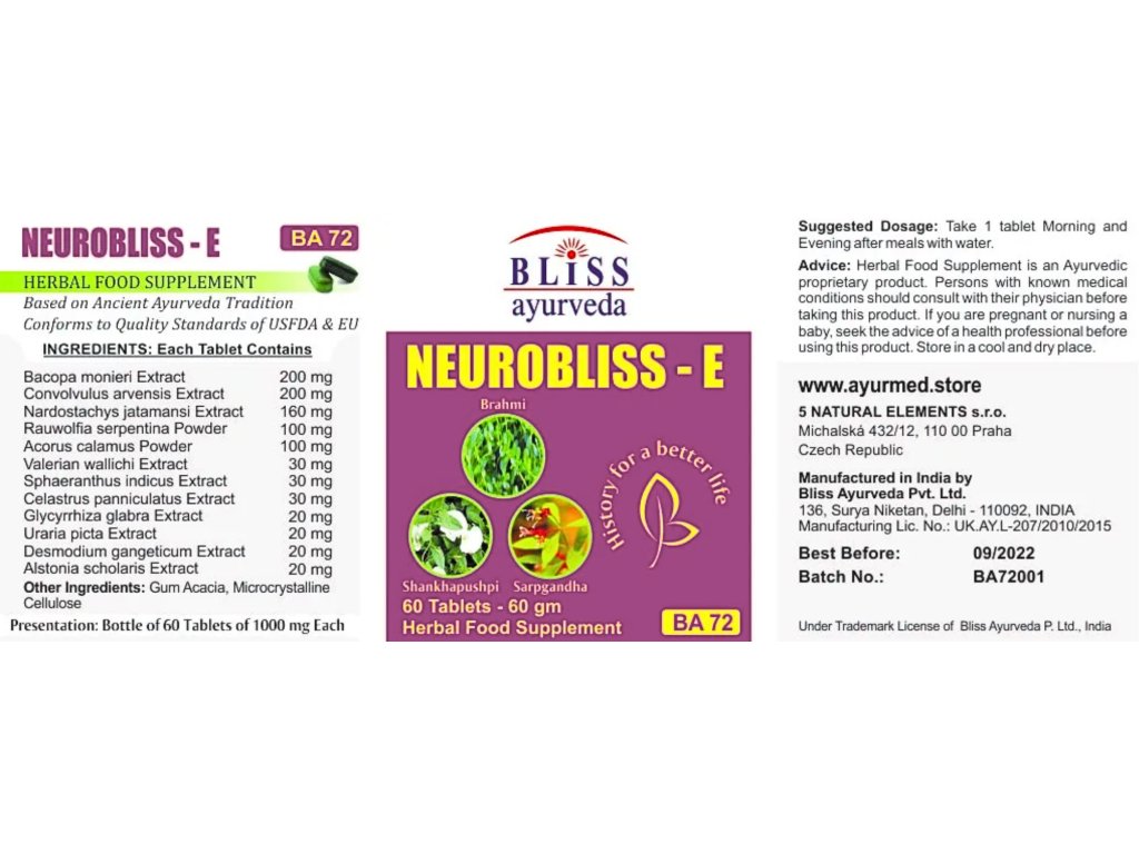 Neurobliss E – 60 tablet v lahvičce, 1000 mg/1 tableta: